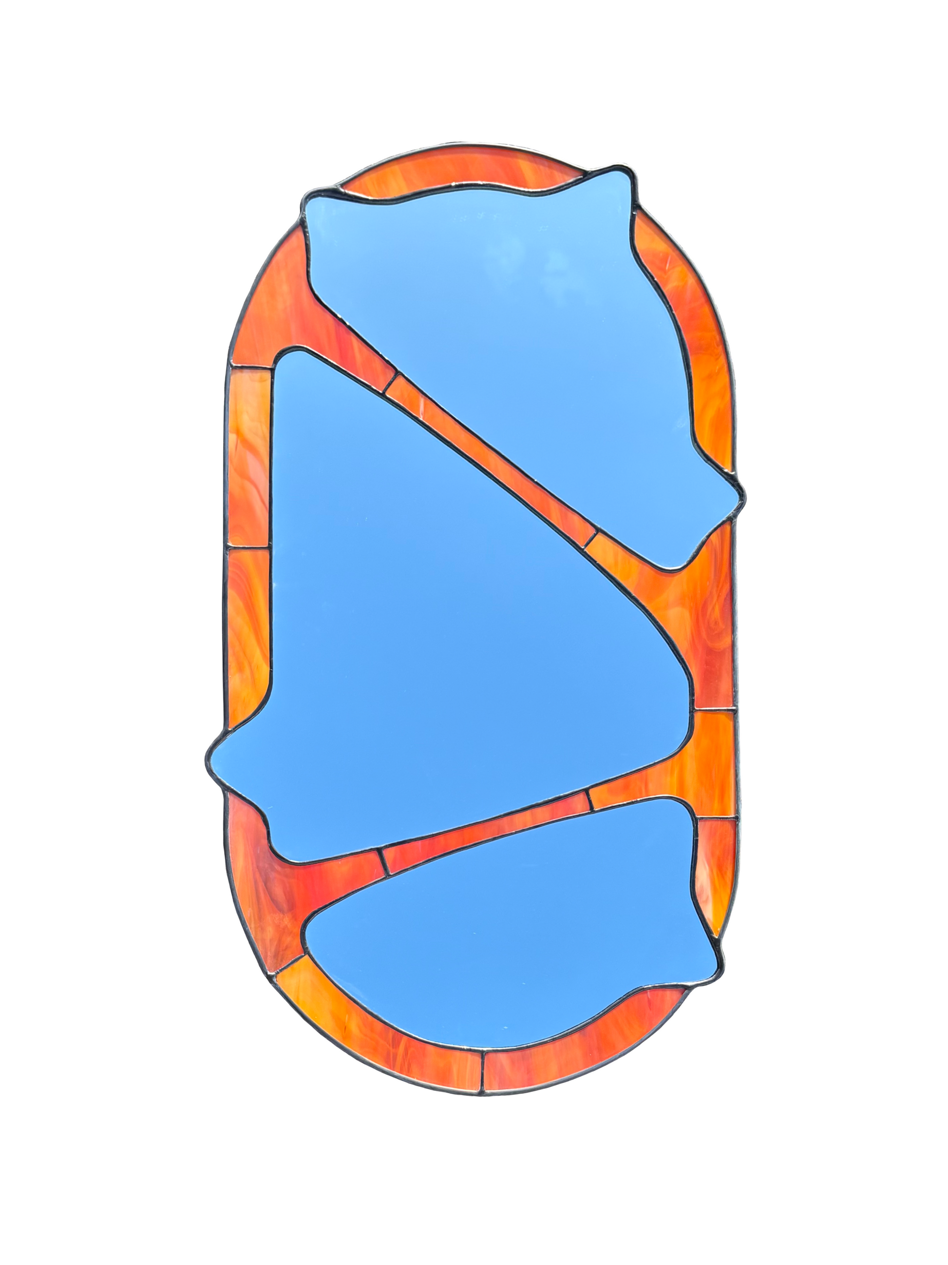 Handmade stained glass mirror crafted with care.